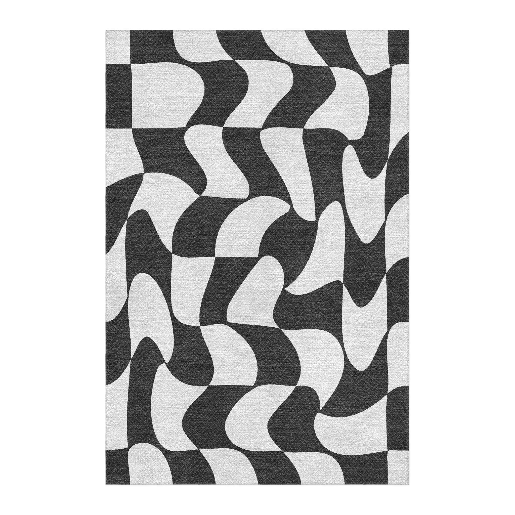 Twyla Checkered Black & White Area Rug